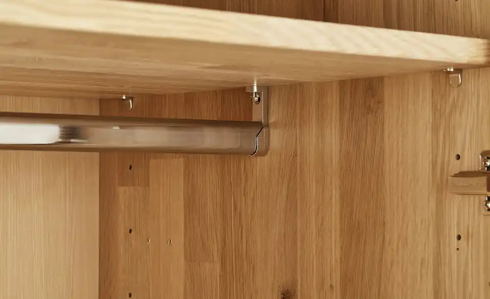 - Mehr zu Ausführung3 Schrankinnenelemente (100 / 50 / 100 cm), je Schrankelement 2 Einlegeböden und 1 Kleiderstange
