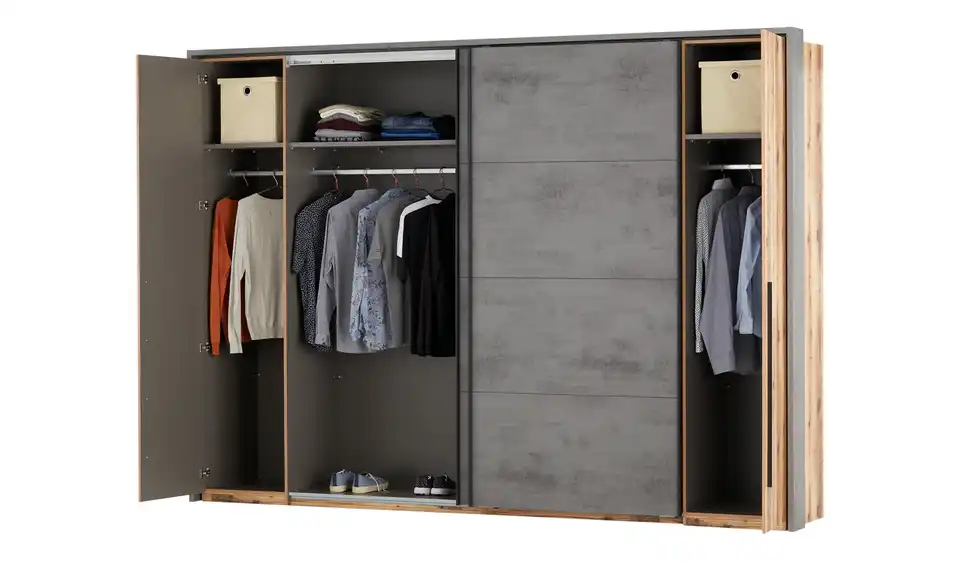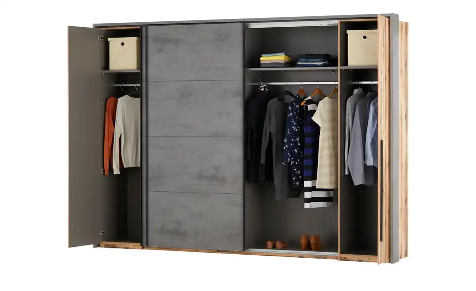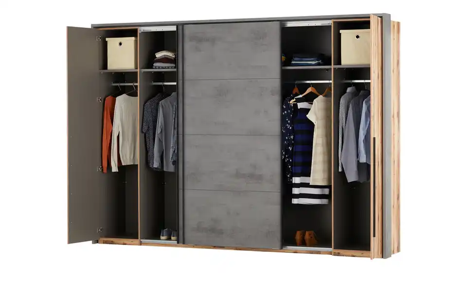 - Mehr zu AusführungSchwebetüren mittig sowie Passepartout in Betonoxid (Nachbildung)