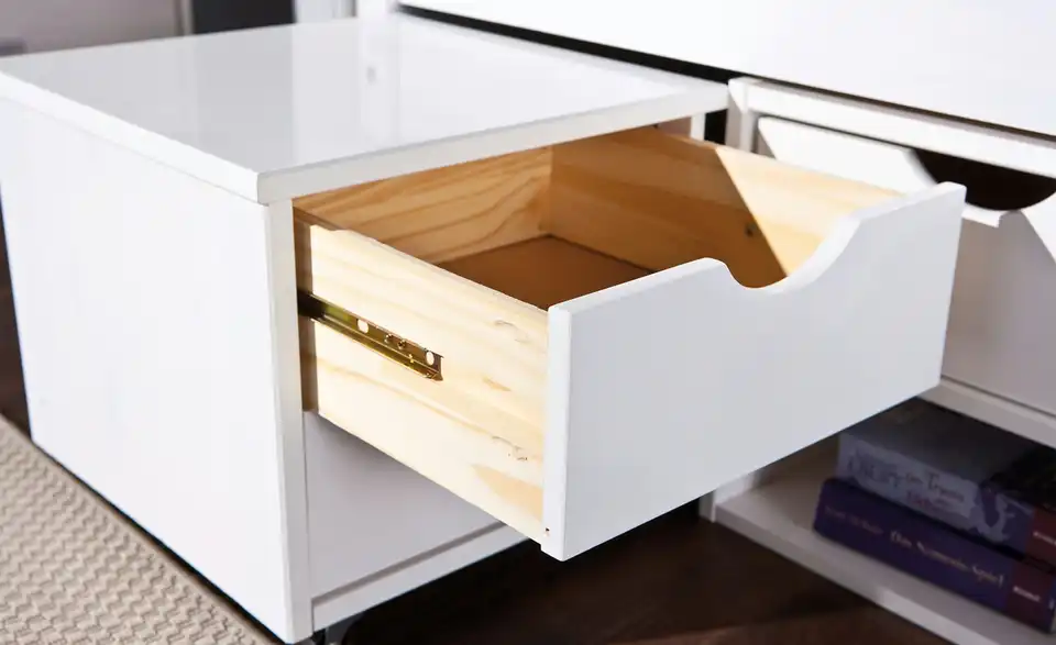 - Mehr zu Ausstattung / Funktion1 rollbare Nachtkommode mit 2 Schubkästen, 1 große Schublade auf Rollen, 2 Regalfächer und 2 Aufbewarungsboxen