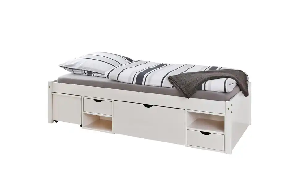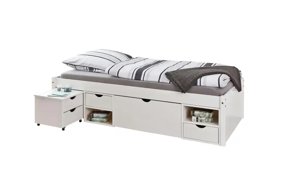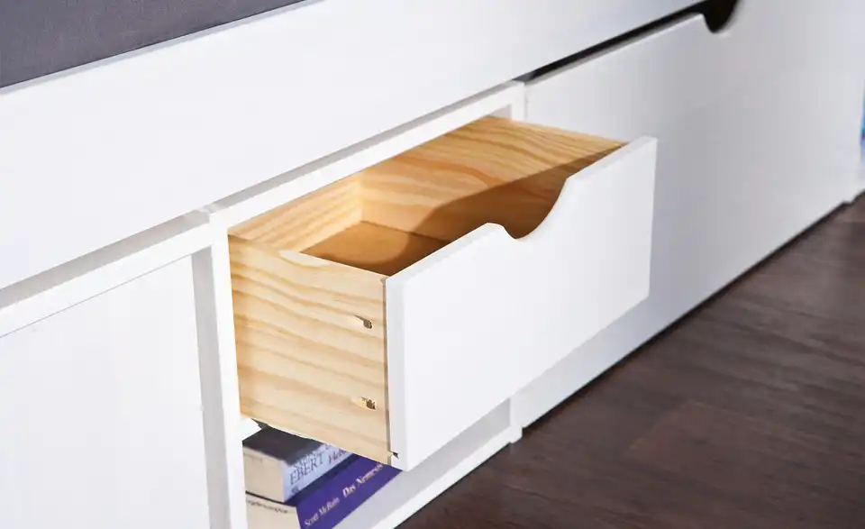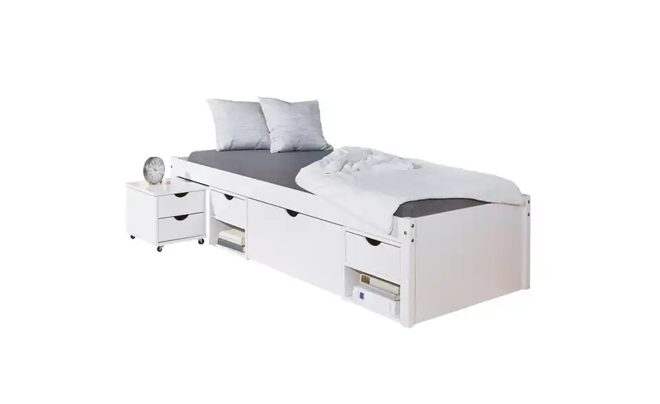 - Lieferumfang / mitgeliefertes Zubehör1 x Massivholz Bett mit 1 x Rollrost, 1 x Nachtkommode, 1 x Schubkasten, 2 x Schubladen, 1 x bebilderte Montageanleitung