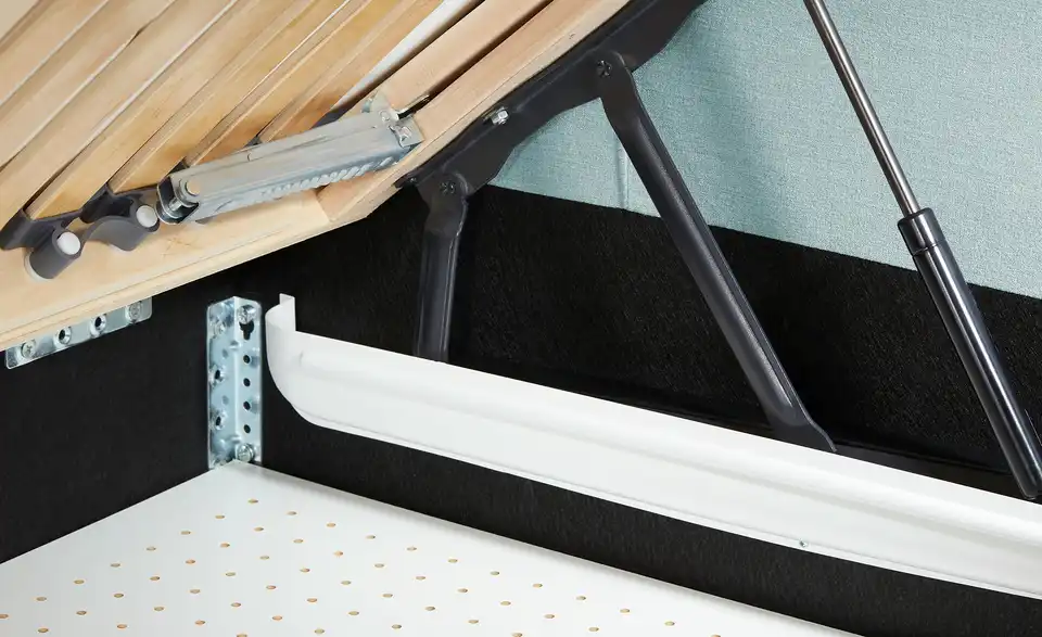 - Ausstattung / FunktionBettkastenöffnung linksBettkastenöffnung rechtsinnen liegender Bettkastenmit Gasdruckfedermanuelle Kopfteilverstellung