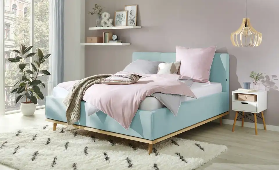 Beim Polsterbett Delphi (Variante A) kommen Scandi-Fans ganz auf ihre Kosten. Blickfang ist das verwendete Eichenholz für die Basis und die schräg zulaufenden Füße. Das sorgt für das beliebte Scandi-Flair im Schlafzimmer. Das aufliegende Polsterbettgestell hebt sich mit seinem leicht strukturierten Webstoffbezug gekonnt ab. Am Kopfteil sorgt eine dezente Zweipunkt-Steppung für moderne Highlights. Zum Bett Delphi (Variante A) gibt es zwei seitlich aufklappbare, verstellbare Lattenroste dazu. So kommst Du problemlos an die beiden belüfteten Bettkästen. Außerdem praktisch: Die passenden Matratzen in Deinem bevorzugten Härtegrad kannst Du gleich mit auswählen. Hole Dir jetzt Scandi-Vibes der Marke Musterring in Dein Schlafzimmer.Lieferung & Versand