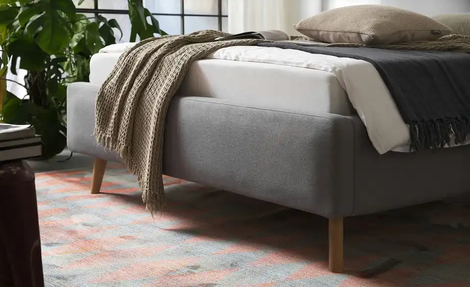Skandinavisches Design ist bekannt für seine natürliche, schlichte Eleganz und Gemütlichkeit. Das Polsterbettgestell Mattis greift den Skandi-Look gekonnt auf. Die dunklen Massivholzfüße sorgen für eine attraktive Retronote. Bettgestell und Kopfteil sind weich gepolstert und bezogen. Der pflegeleichte Bezug ist dezent meliert und harmoniert auch mit bereits vorhandenen Schlafzimmermöbeln. Das Polsterbettgestell Mattis kann wahlweise auch mit praktischen Bettkasten für zusätzlichen Stauraum bestellt werden.Lieferung & Versand