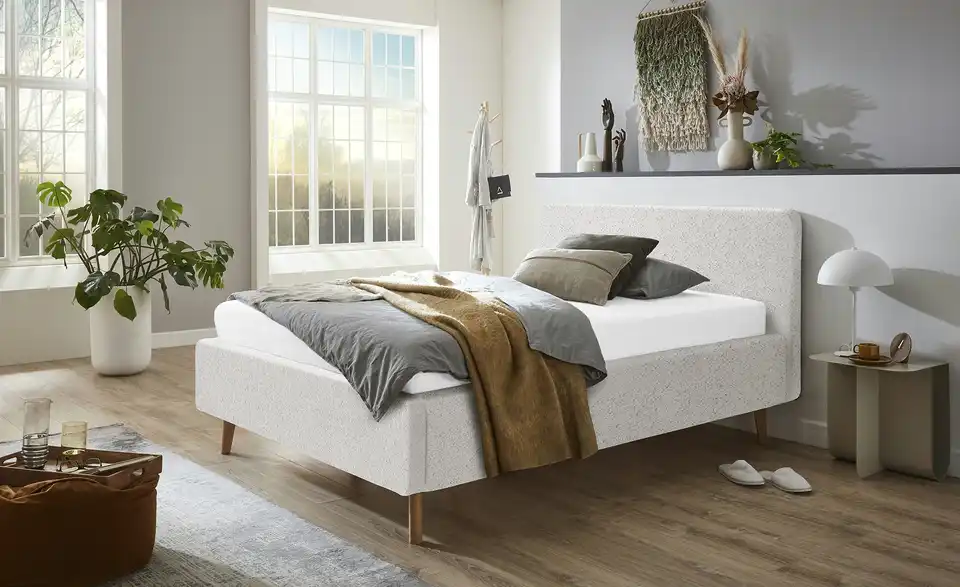 Skandinavisches Design ist bekannt für seine natürliche, schlichte Eleganz und Gemütlichkeit. Das Polsterbettgestell Mattis greift den Skandi-Look gekonnt auf. Die dunklen Massivholzfüße sorgen für eine attraktive Retronote. Bettgestell und Kopfteil sind weich gepolstert und bezogen. Der pflegeleichte Bezug ist dezent meliert und harmoniert auch mit bereits vorhandenen Schlafzimmermöbeln. Das Polsterbettgestell Mattis kann wahlweise auch mit praktischen Bettkasten für zusätzlichen Stauraum bestellt werden.Lieferung & Versand