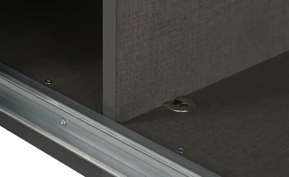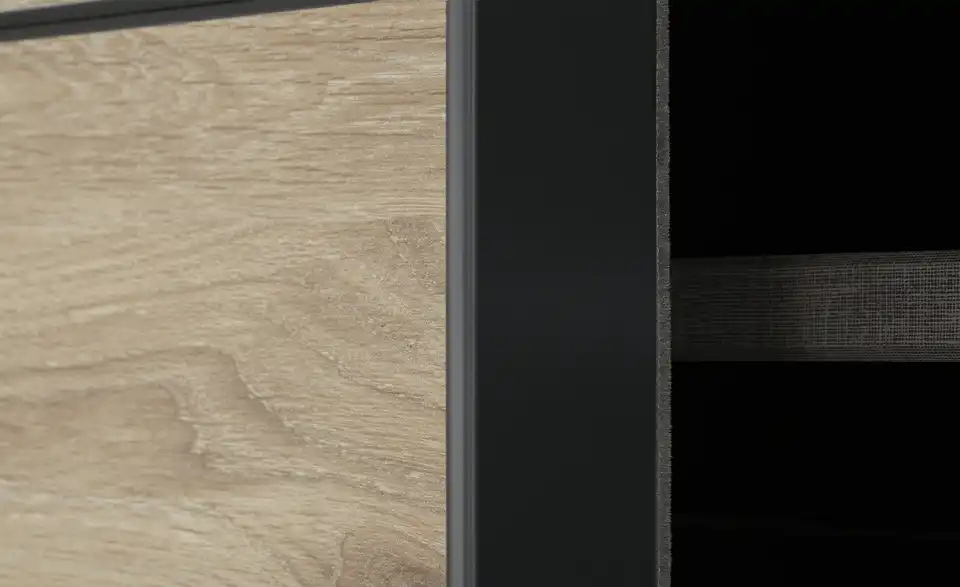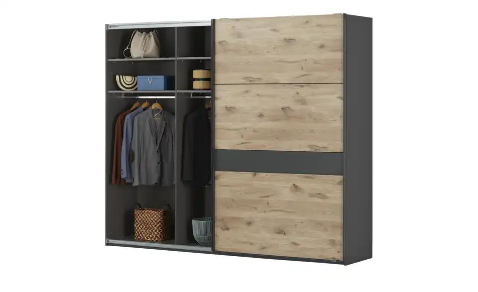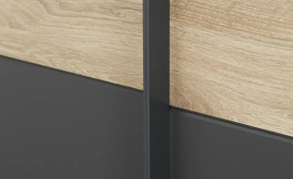 - AusführungSchwebetürenschrank in Viking Oak hell mit Bauchbine in Absetzung Graphit