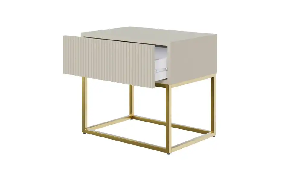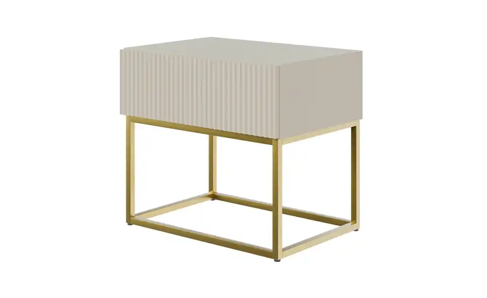 - Lieferumfang / mitgeliefertes ZubehörBeiger Nachttisch mit goldenem Kufengestell