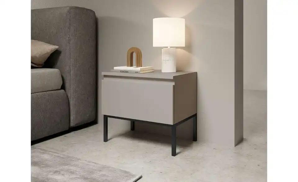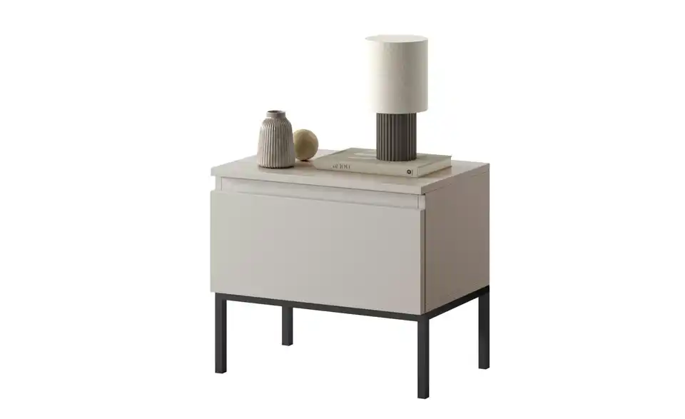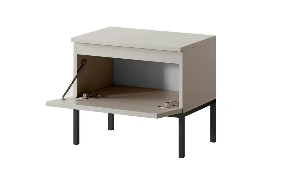 - Lieferumfang / mitgeliefertes ZubehörBeiger Nachttisch mit schwarzen Füßen