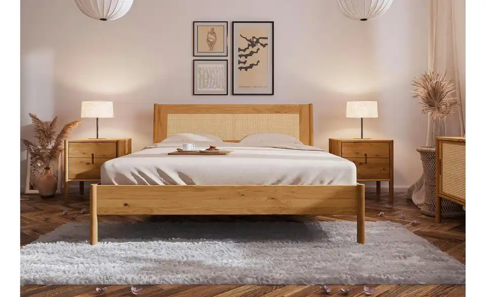 - Stabiles Massivholzbett in Kernbuche oder Wildeiche