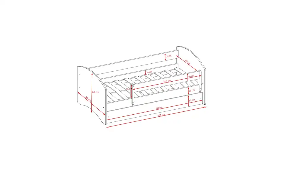 - Lieferumfang / mitgeliefertes ZubehörMontagesatz (Schrauben, Dübel), Matratzenrahmen, Schubladenführungen