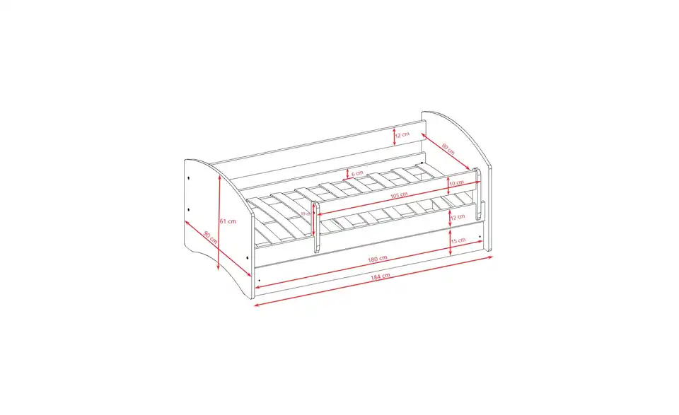 - Lieferumfang / mitgeliefertes ZubehörMontagesatz (Schrauben, Dübel), Matratzenrahmen, Schubladenführungen
