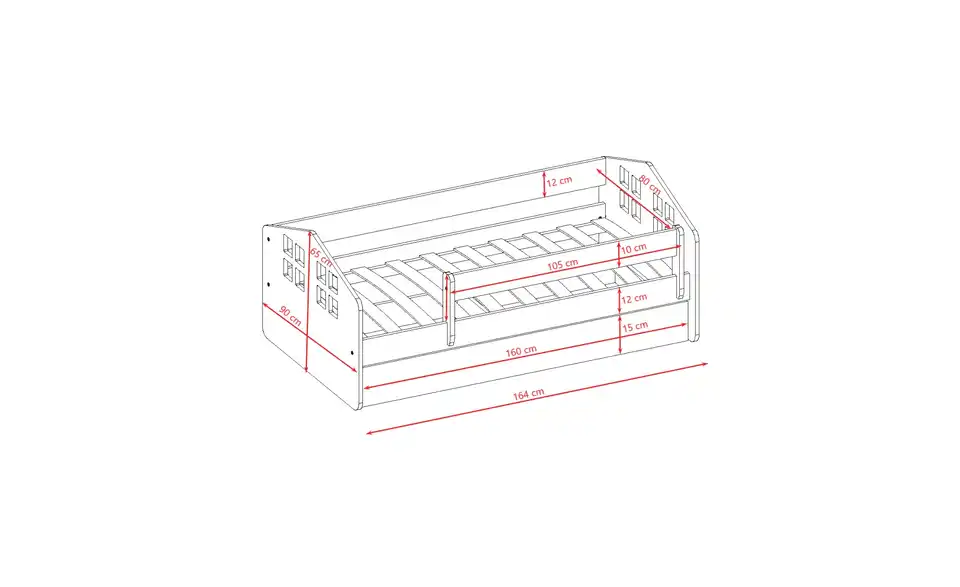 - Lieferumfang / mitgeliefertes ZubehörMontagesatz (Schrauben, Dübel), Matratzenrahmen, Schubladenführungen, Matratze