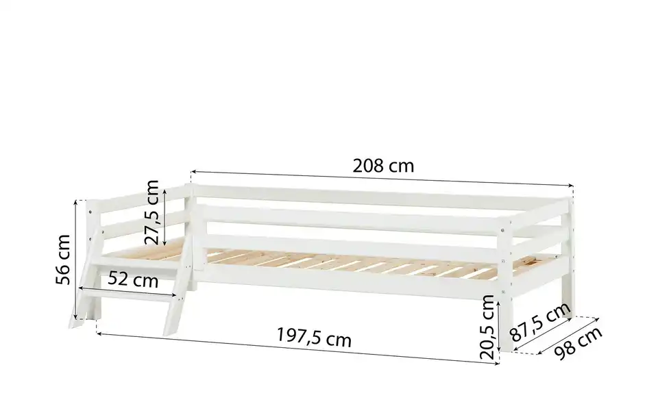 - Lieferumfang / mitgeliefertes ZubehörKinderbett / Juniorbett mit zusätzlichem Rausfallschutz und kleiner Leiter, 90x200 cm, Weiß