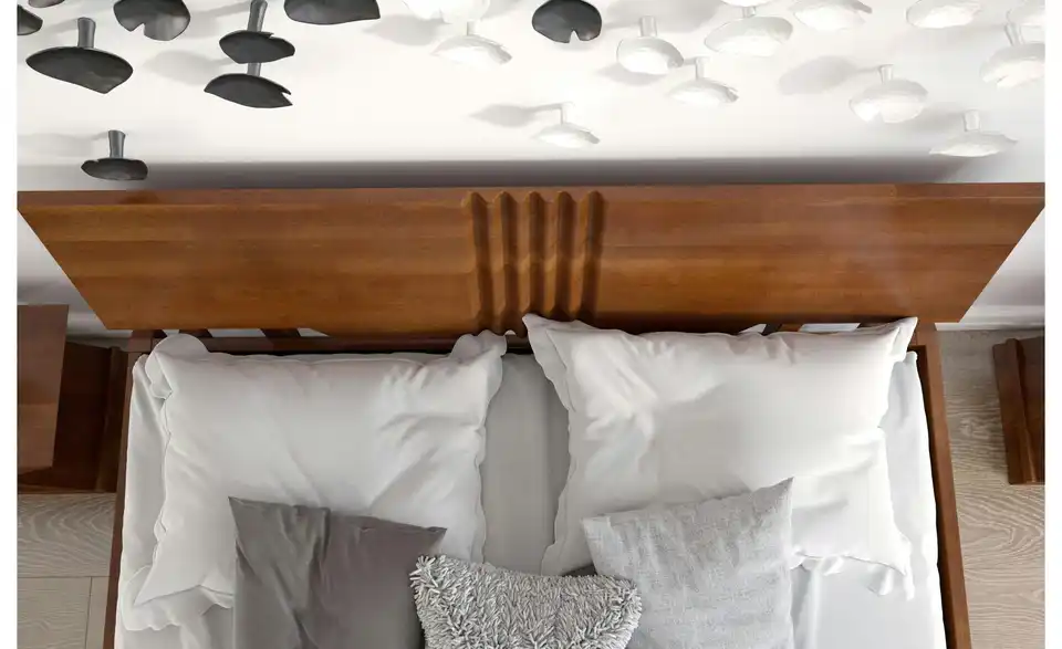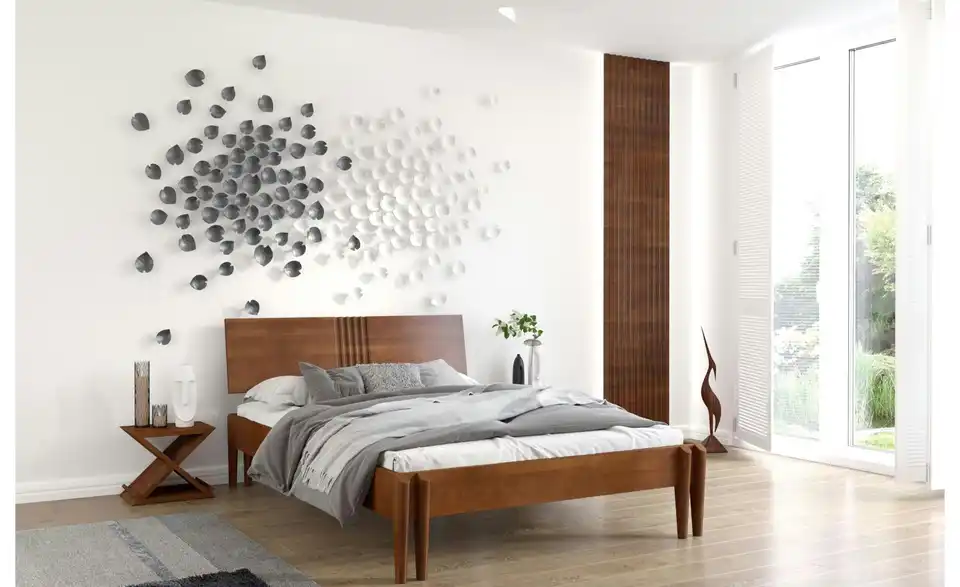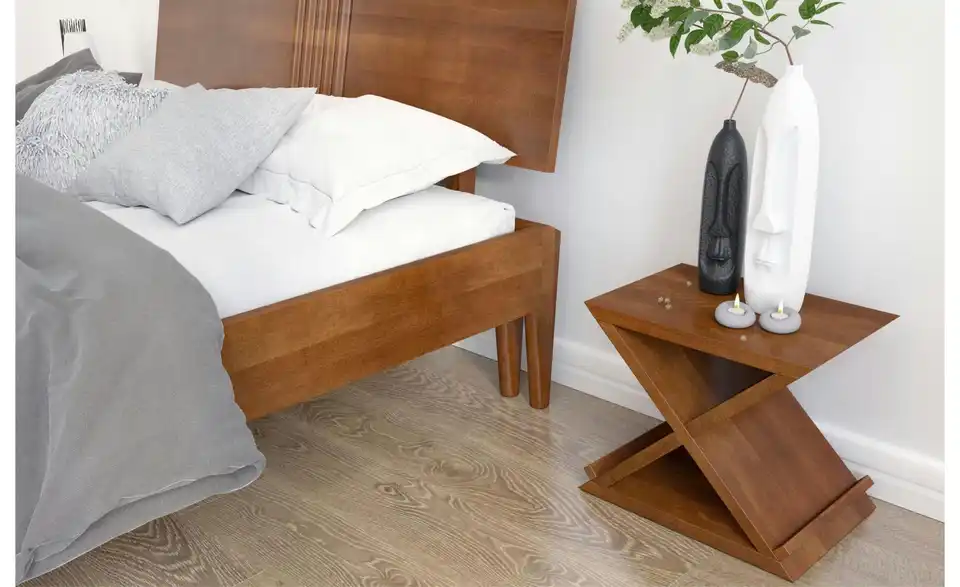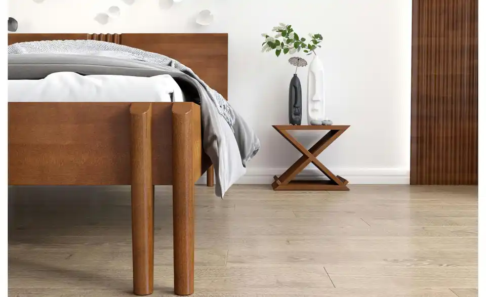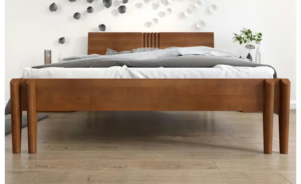 - Mehr zu MaterialMassivholzbett aus Buchenleimholz, nussbaumfarben lackiert