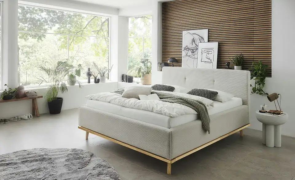 - Mehr zu Ausstattung / FunktionBelüfteter Bettkasten (Multilochung) und seitlich abklappbarer Federholzrahmen, 28 Leisten mit 5-facher Härtegradverstellung,7-Zonen-Tonnentaschenfederkern-Matratze (TTFK 500) mit Abdeckung RG 40, Bezug mit Klimaband, versteppt mit 300 g antiallergischer Watte, waschbar bei 60º C, Reißverschluss 4-seitigHolzrahmen massiv, eichefarbig
