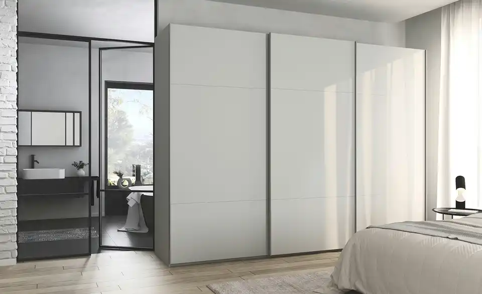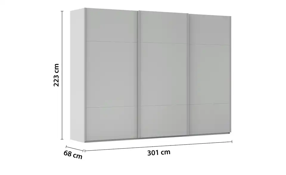 - Mehr zu AusführungDreitüriger Schwebetürenschrank inkl. ZubehörBestehend aus drei Elementen (je ca. 100 cm breit)
