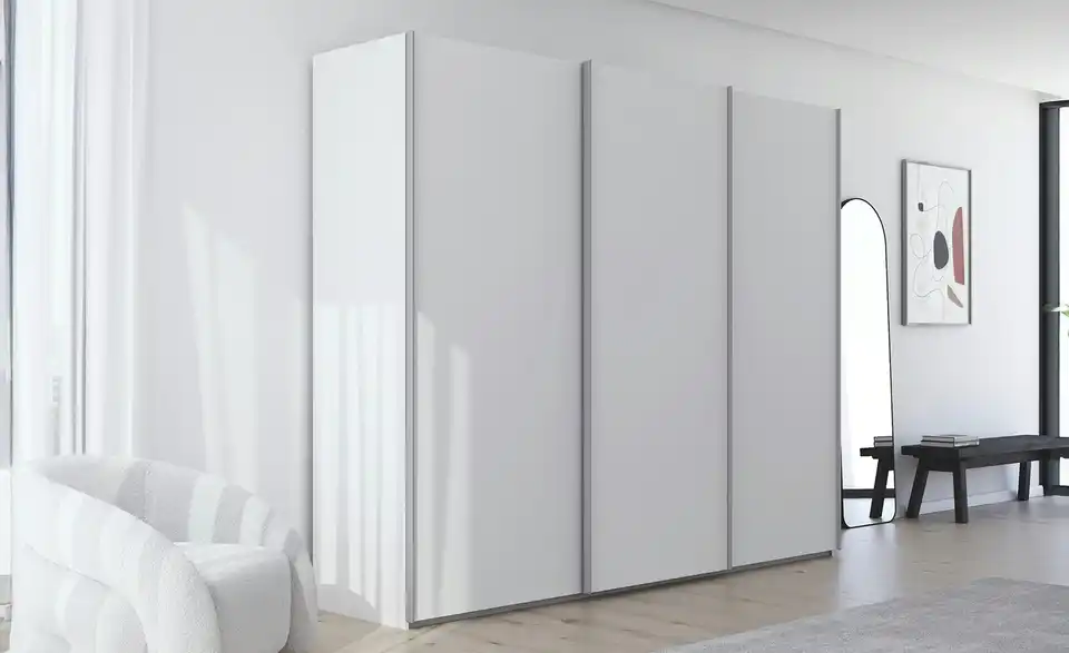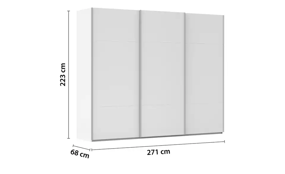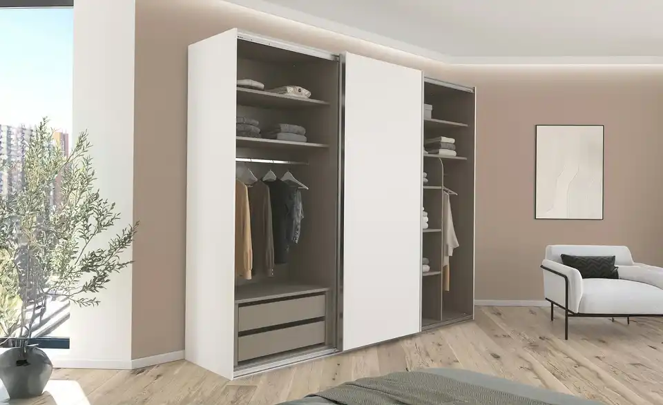 - Mehr zu AusführungDreitüriger Schwebetürenschrank inkl. ZubehörBestehend aus drei Elementen (je ca. 90 cm breit)