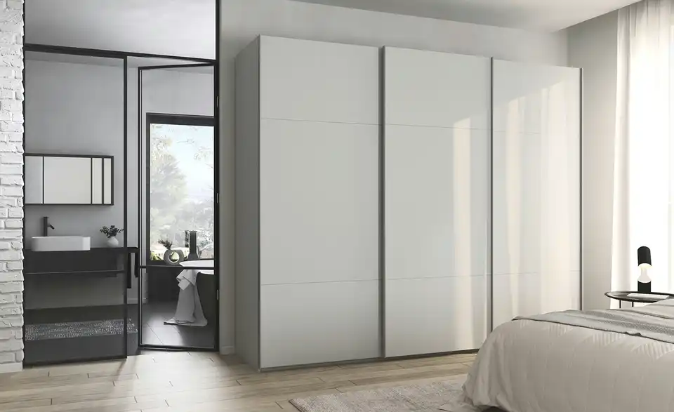 - Mehr zu AusführungDreitüriger Schwebetürenschrank inkl. ZubehörBestehend aus drei Elementen (je ca. 90 cm breit)