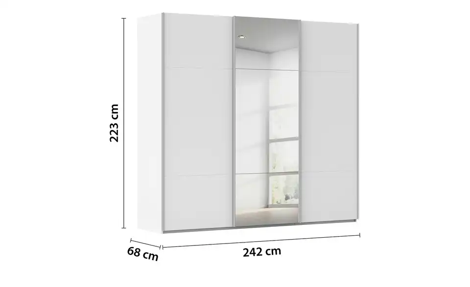 - Mehr zu AusführungDreitüriger Schwebetürenschrank mit Spiegel inkl. ZubehörBestehend aus drei Elementen (je ca. 80 cm breit)