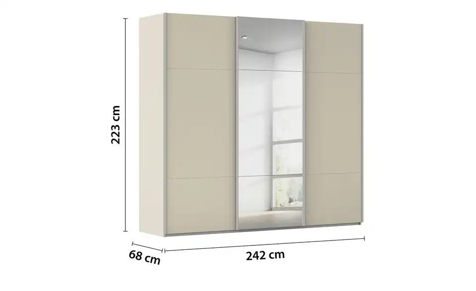 - Mehr zu AusführungDreitüriger Schwebetürenschrank mit Spiegel inkl. ZubehörBestehend aus drei Elementen (je ca. 80 cm breit)