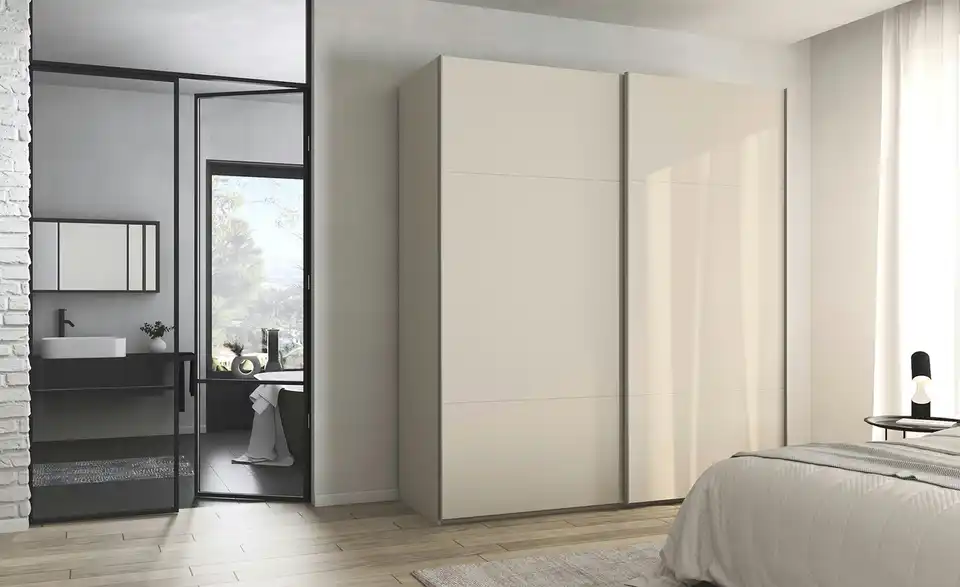 - Mehr zu AusführungZweitüriger Schwebetürenschrank inkl. ZubehörBestehend aus zwei Elementen (je ca. 100 cm breit)