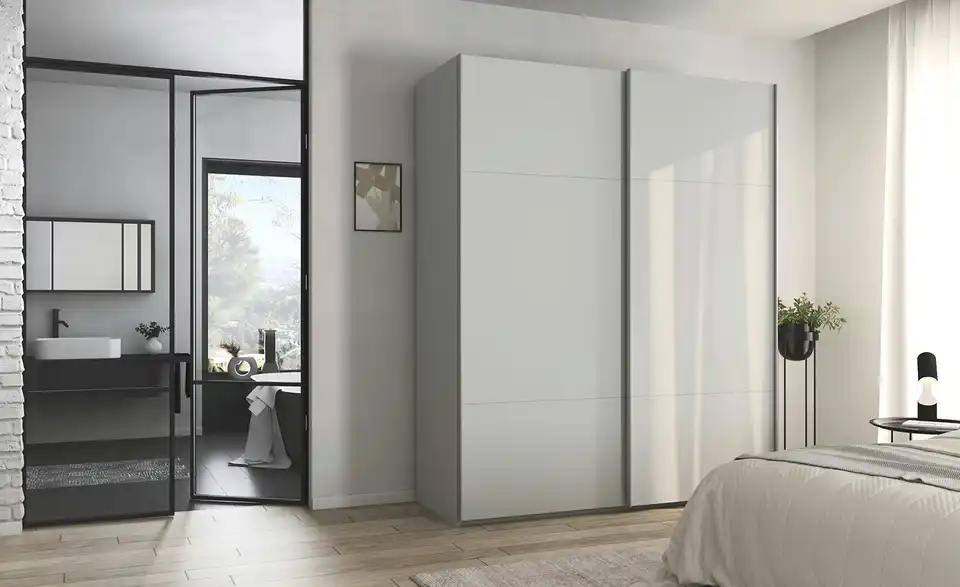 - Mehr zu AusführungZweitüriger Schwebetürenschrank inkl. ZubehörBestehend aus zwei Elementen (je ca. 90 cm breit)