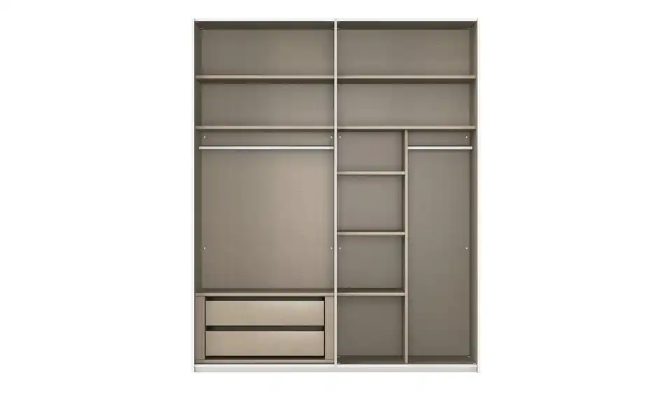 - Lieferumfang / mitgeliefertes ZubehörSchwebetürenschrank mit Schubkasteneinsatz (2 Schüben), SChrankinneneinteilung und Schwebetürendämpfer