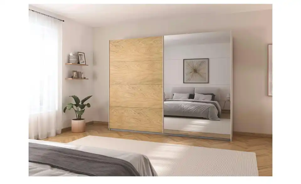 - Moderne Kombination in der Front: Eiche und Spiegel