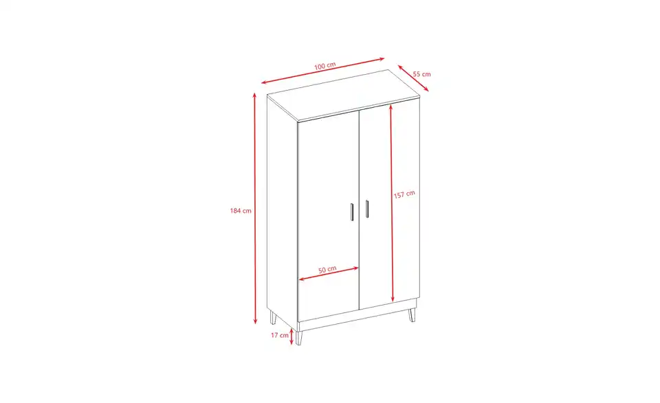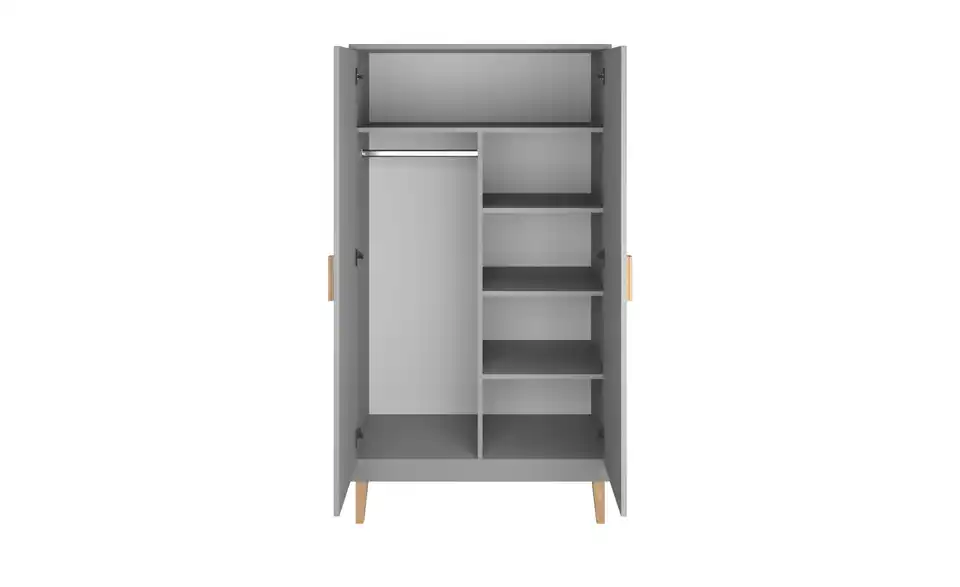 - Lieferumfang / mitgeliefertes ZubehörMontagesatz (Schrauben, Dübel), 6x Türscharnier, 1x Kleiderbügelstange, 4x Holzbein, 2x Holzgriff
