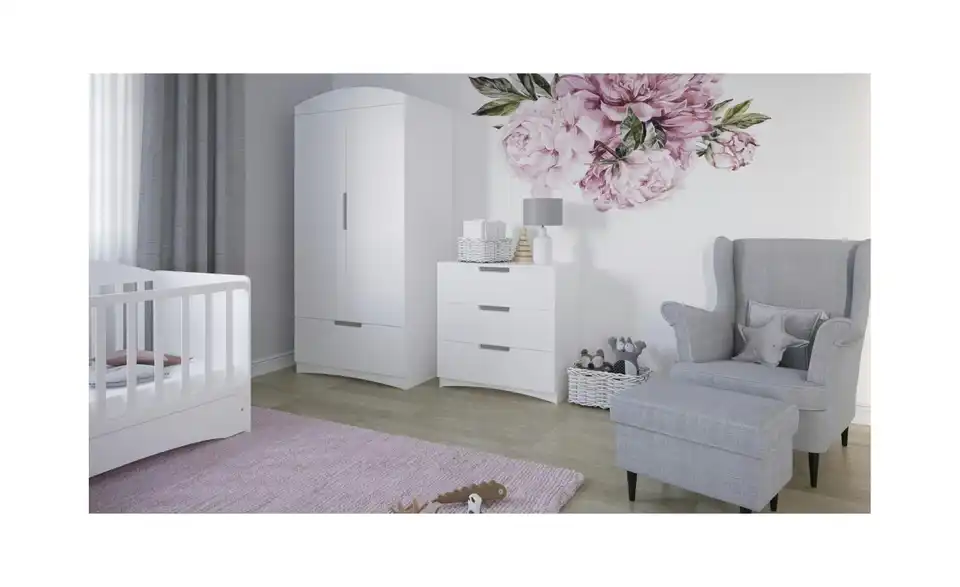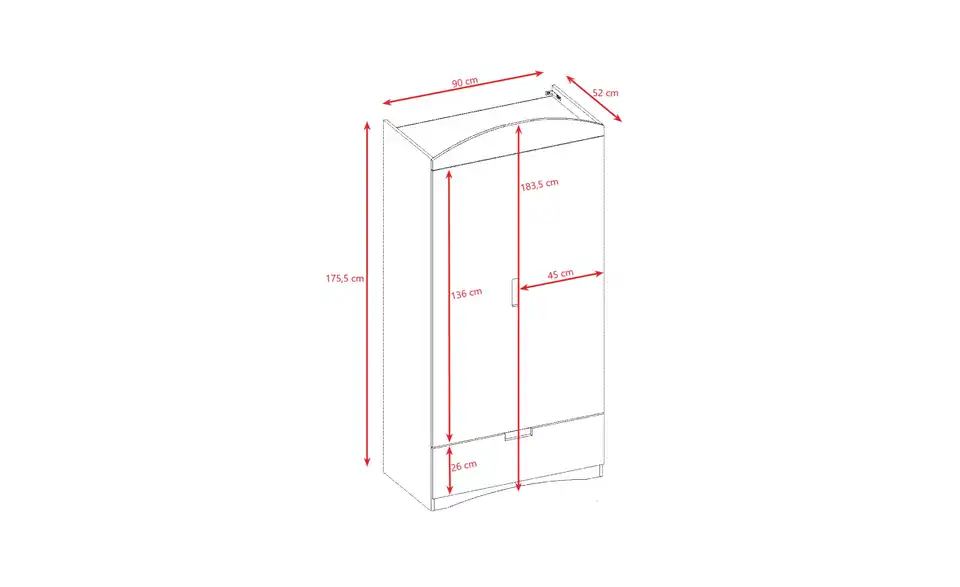 - Lieferumfang / mitgeliefertes ZubehörMontagesatz (Schrauben, Dübel), 6x Türscharnier, 2x Schubladenführung, 1x Kleiderbügelstange