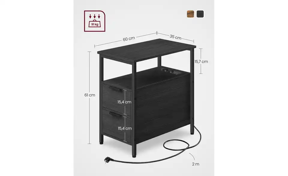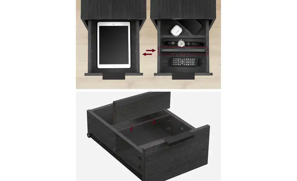 - Stauraum in 2 Schüben und Ablage auf der Rückseite