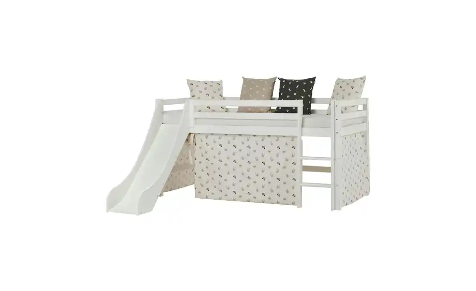 - Lieferumfang / mitgeliefertes ZubehörVorhang für die Seiten und die Front des Kinderbetts mit Aufhängung für Kinderbetten mit Liegefläche 90x200 und Höhe unter dem Bett ca. 70 cm