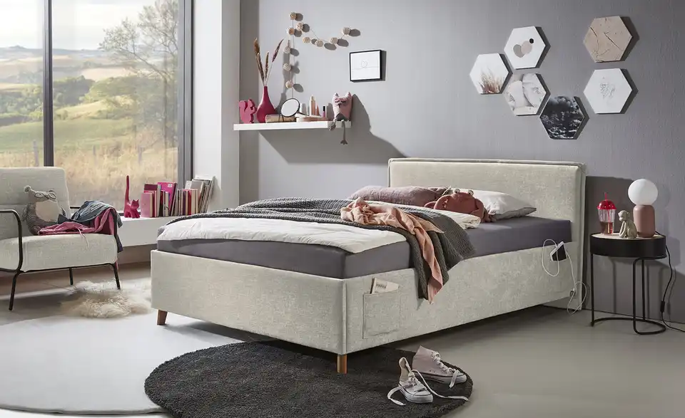 - Zwei stylische Seitentaschen am Bett für Handy, Tablet oder Bücher