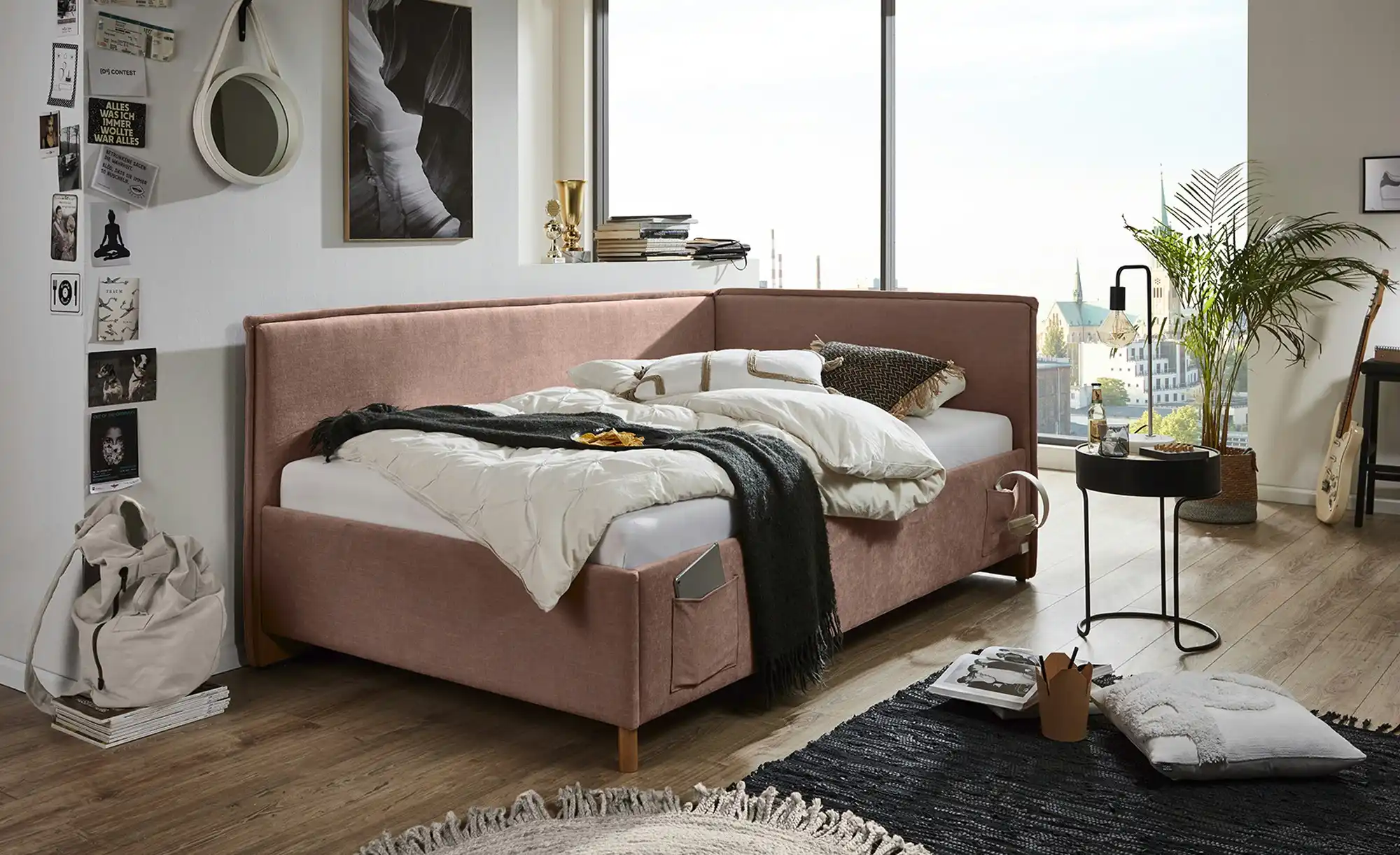 - Zwei stylische Seitentaschen am Bett für Handy, Tablet oder Bücher
