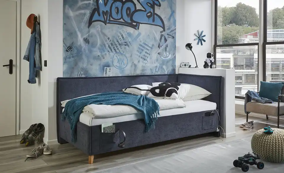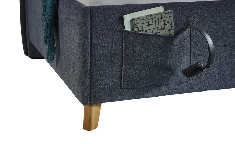 - Zwei stylische Seitentaschen am Bett für Handy, Tablet oder Bücher