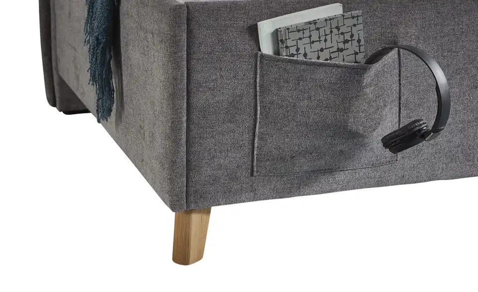 - Zwei stylische Seitentaschen am Bett für Handy, Tablet oder Bücher