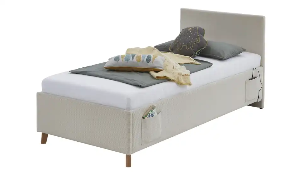 - Zwei praktische Seitentaschen am Bett für Handy, Tablet oder Bücher