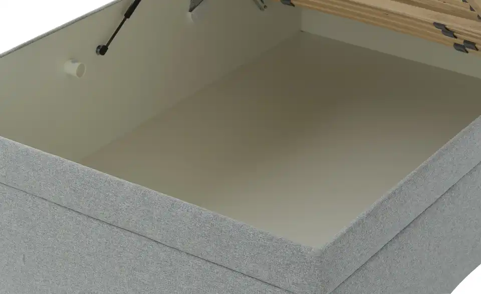- Mehr zu Ausstattung / FunktionMaterial Lattenrahmen Leisten aus Birke; Längskante aus Schichtholz, restlichen Teile: Massivholz (Buche)Bettkasten vom Fußteil zugänglich (Gasdruckfeder)