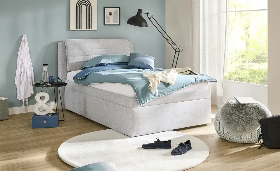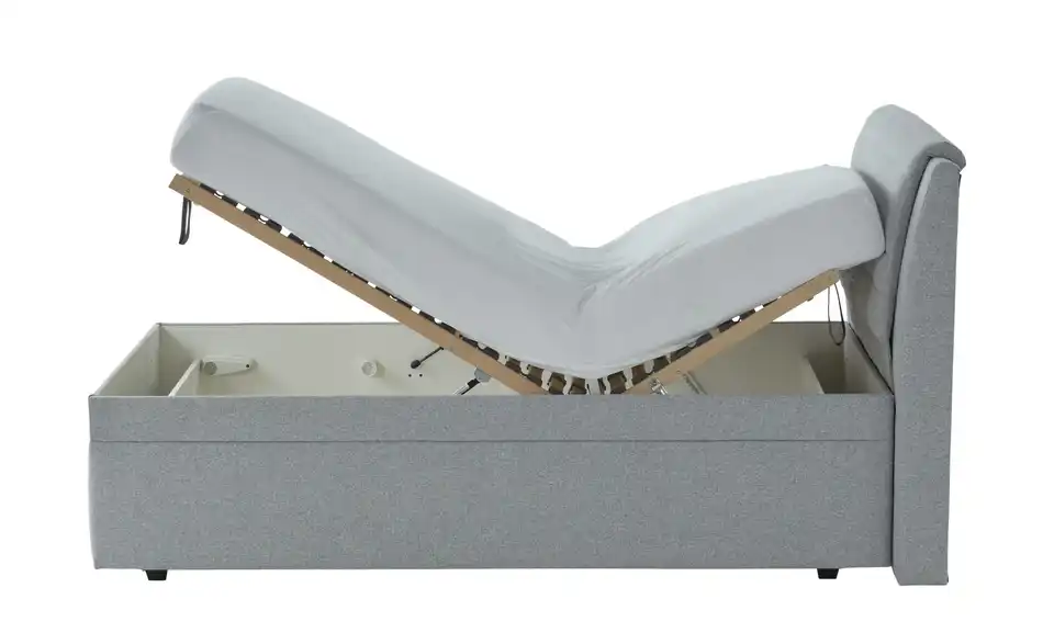 - Ausstattung / Funktioninnen liegender BettkastenBettkastenöffnung am Fußteilmit Gasdruckfedermanuelle Kopfteilverstellungmanuelle Fußteilverstellung