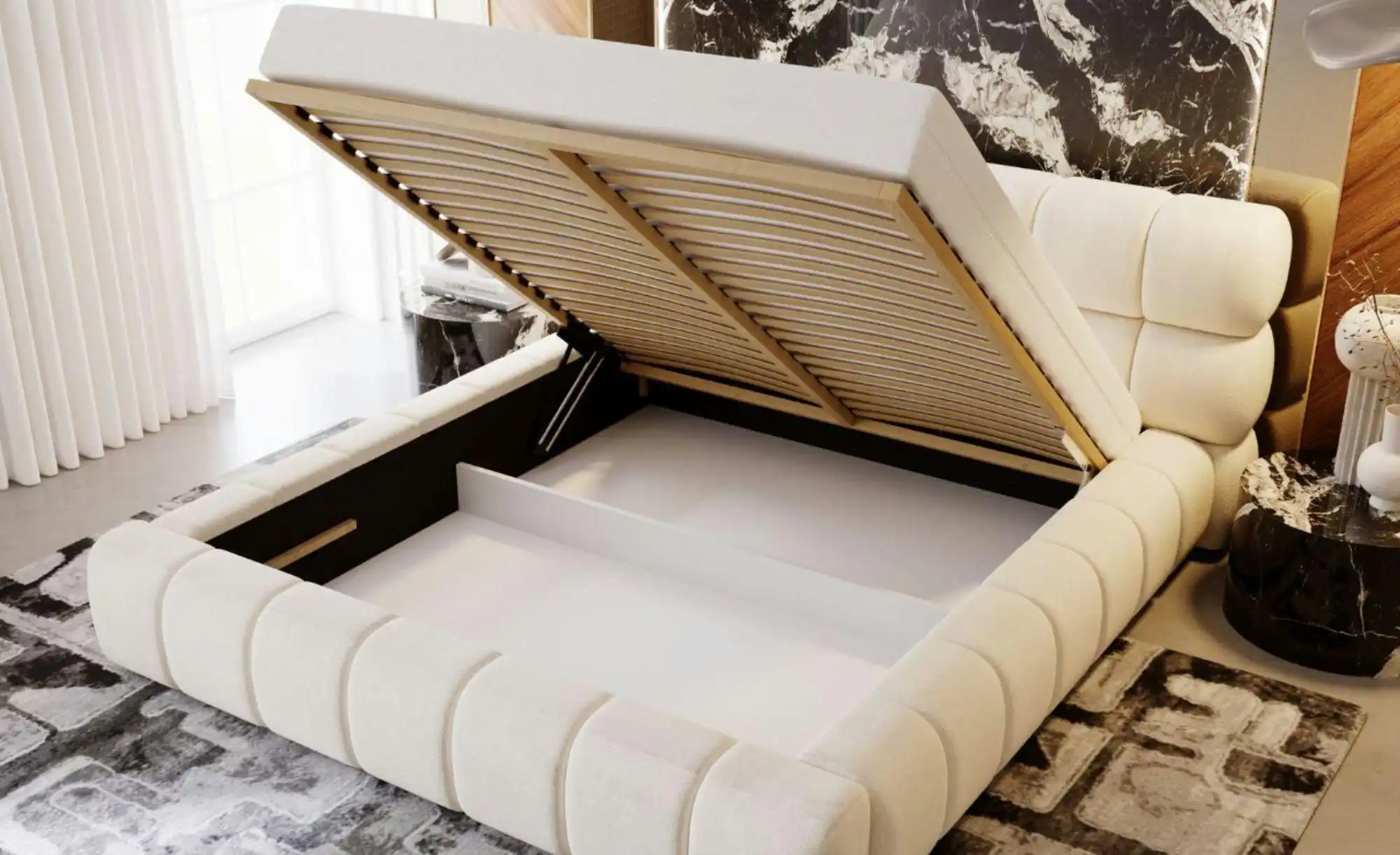 - Ausstattung / Funktioninnen liegender Bettkasten