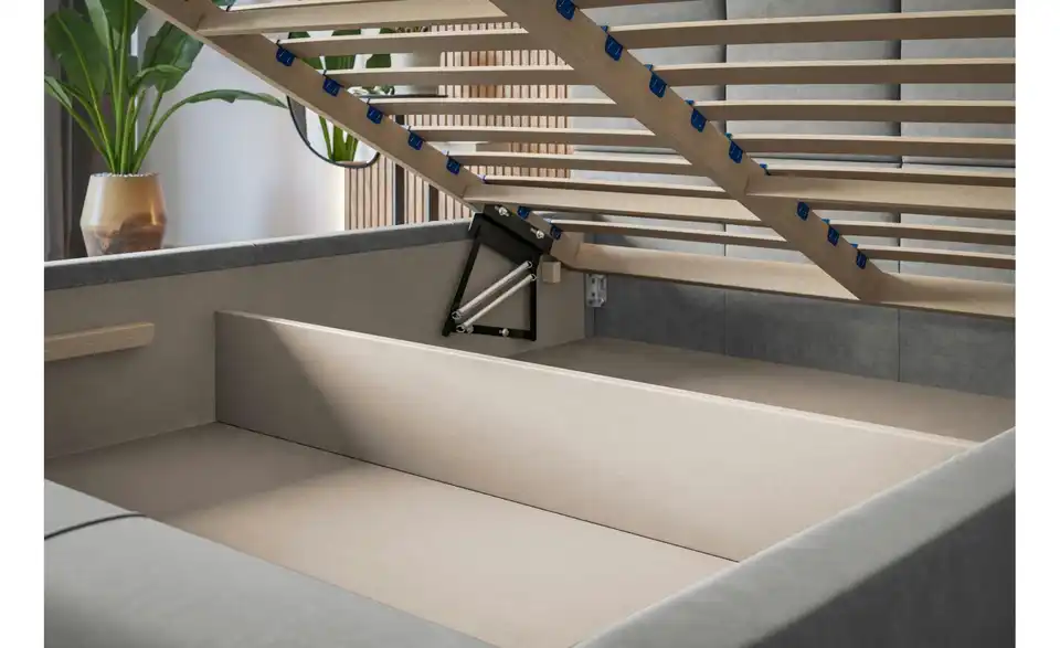 - Lieferumfang / mitgeliefertes ZubehörPolsterbett mit Bettkasten, Kopfteil, Lattenrost und Füße inkl. Anleitung
