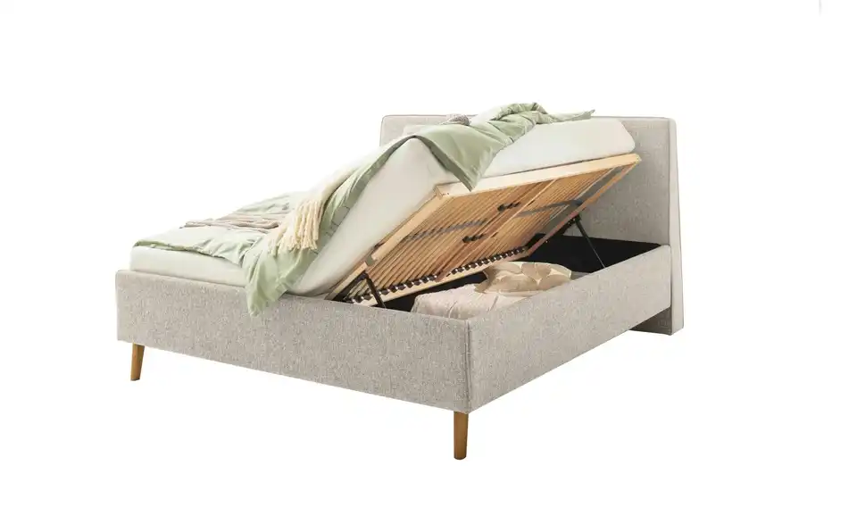 - Ausstattung / FunktionKopfteil rundherum bezogeninnen liegender BettkastenBettkasten mit Belüftung