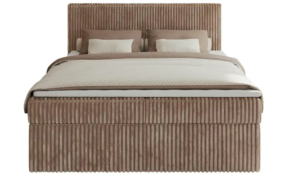 - Lieferumfang / mitgeliefertes ZubehörBraunes Polsterbett mit Bettkasten 140x200 cm
