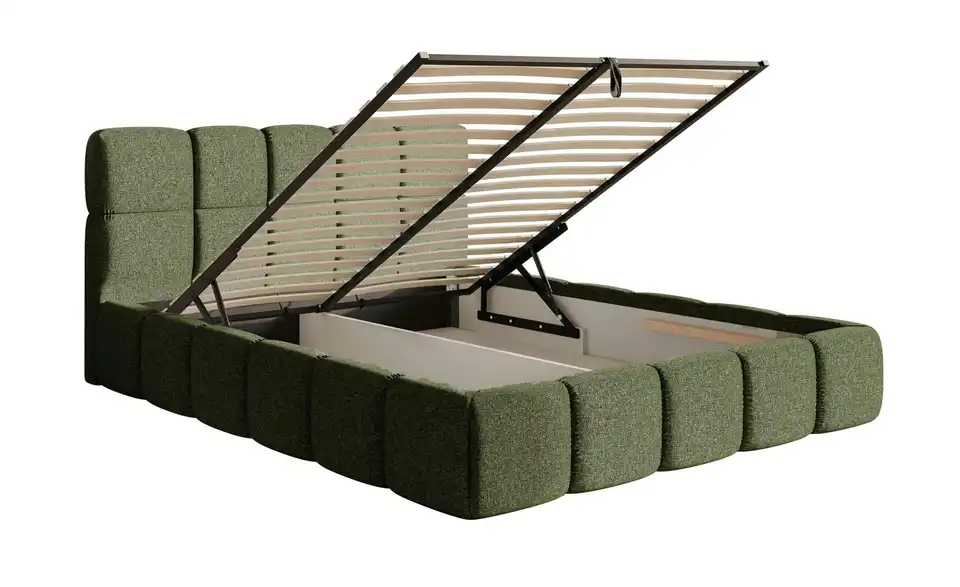 - Ausstattung / Funktioninnen liegender BettkastenBettkastenöffnung am Fußteilmit Gasdruckfeder