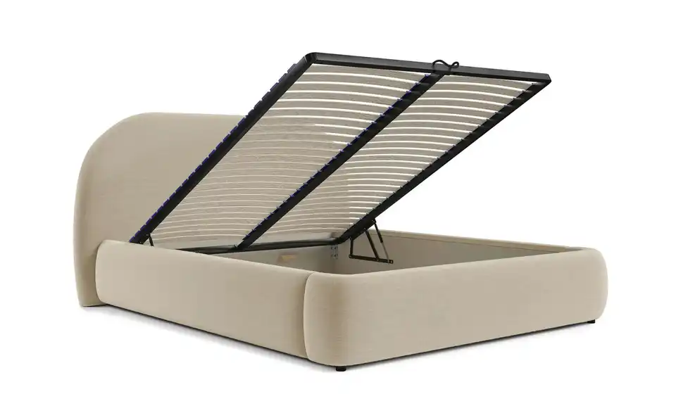 - Ausstattung / Funktioninnen liegender BettkastenBettkastenöffnung am Fußteilmit Gasdruckfeder