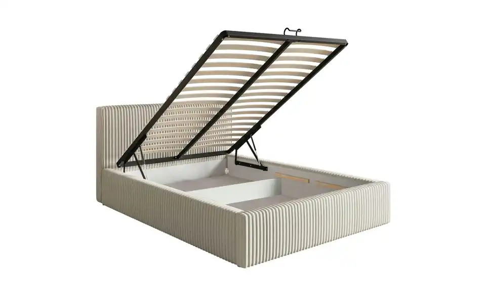 - Ausstattung / Funktioninnen liegender BettkastenBettkastenöffnung am Fußteilmit Gasdruckfeder