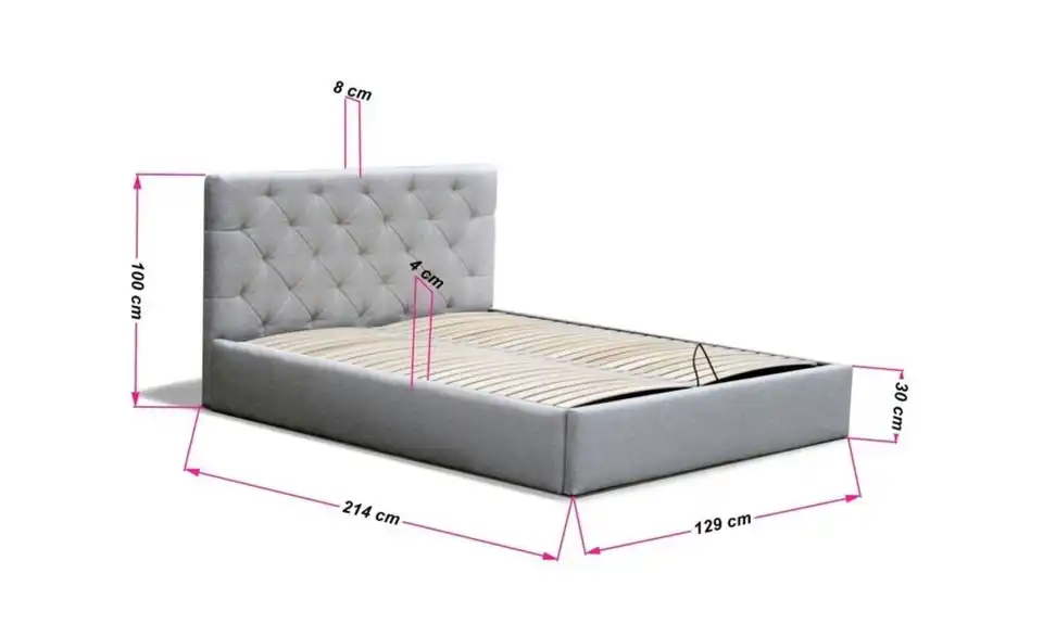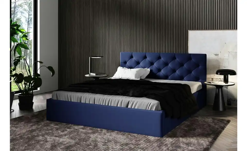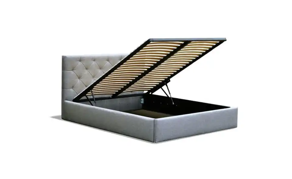 - Ausstattung / FunktionBettkastenöffnung am Fußteilinnen liegender Bettkastenmit GasdruckfederKopfteil rundherum bezogen