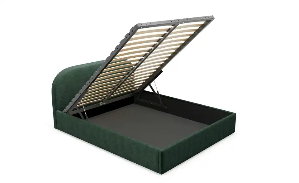 - Ausstattung / FunktionBettkastenöffnung linksBettkastenöffnung rechtsinnen liegender Bettkastenmit GasdruckfederKopfteil rundherum bezogen