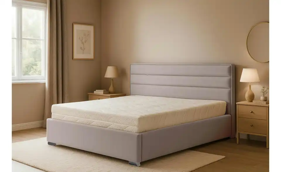 - Ausstattung / FunktionBettkastenöffnung linksBettkastenöffnung rechtsinnen liegender Bettkastenmit GasdruckfederKopfteil rundherum bezogen