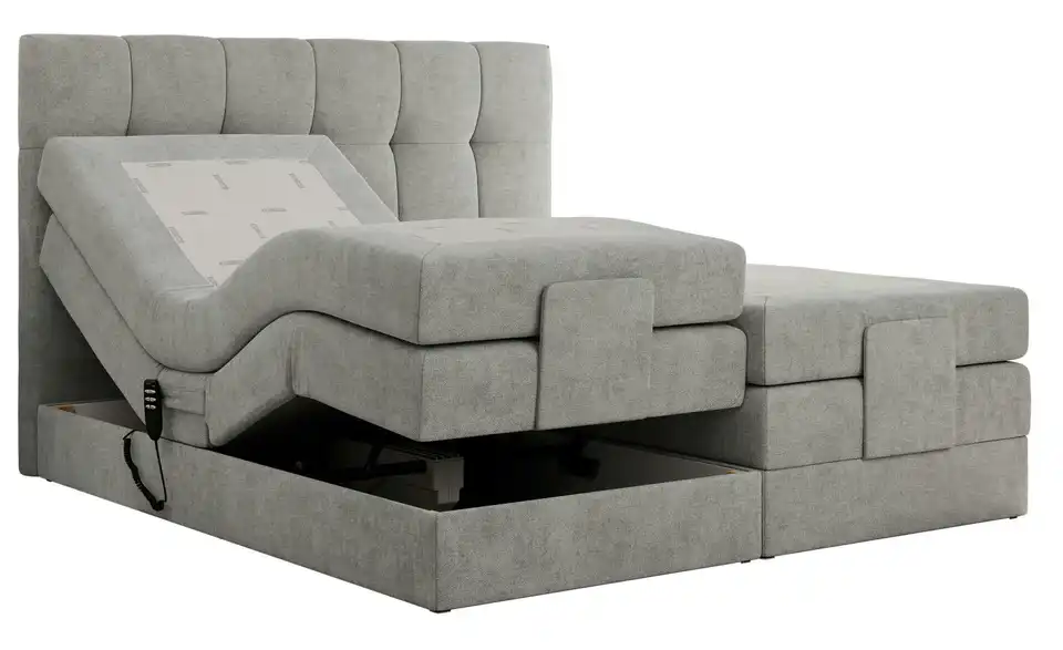 - Lieferumfang / mitgeliefertes ZubehörHellgraues Motor-Boxspringbett mit Bettkasten 180x200 cm
