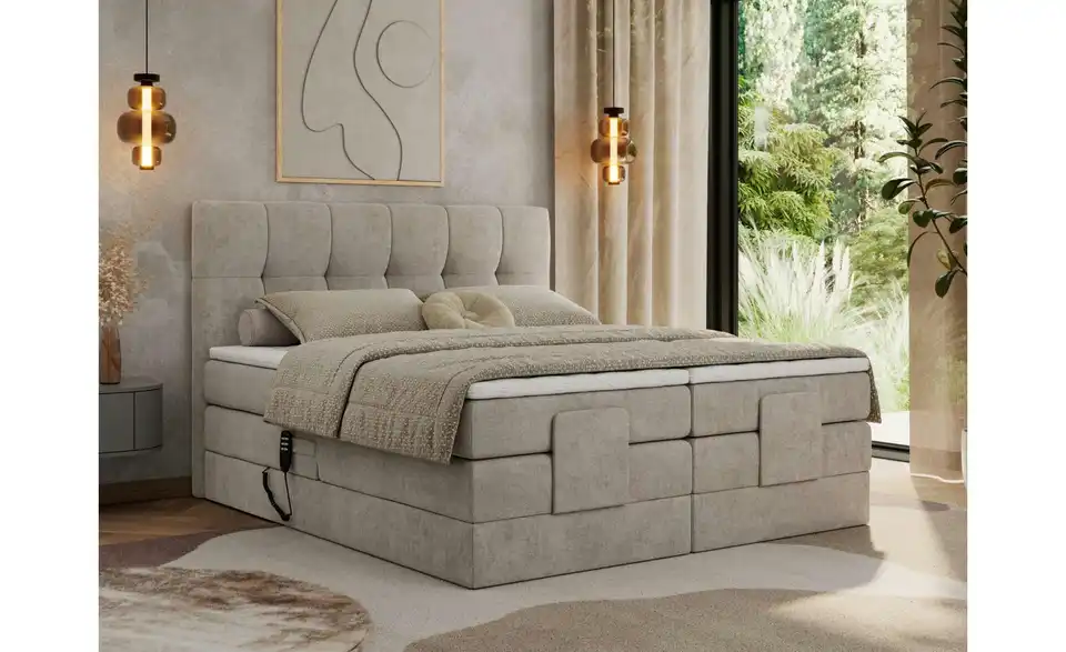 - Lieferumfang / mitgeliefertes ZubehörBeiges Motor-Boxspringbett mit Bettkasten 160x200 cm